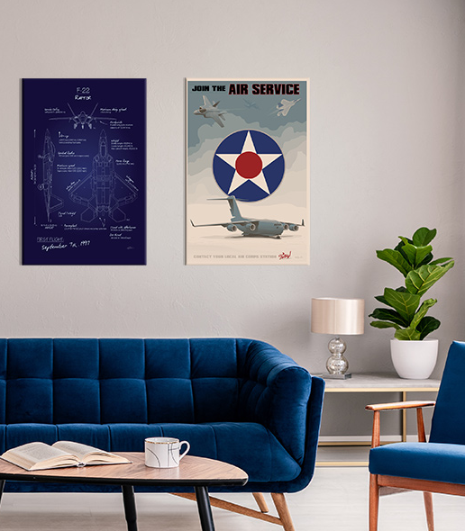 F-22 Blueprint Art vintage style military aviation travel poster art by – Squadron Posters!
