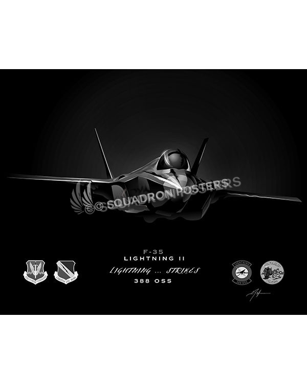 “F-35 388 OSS Jet Black Lithograph” art by – Squadron Posters!