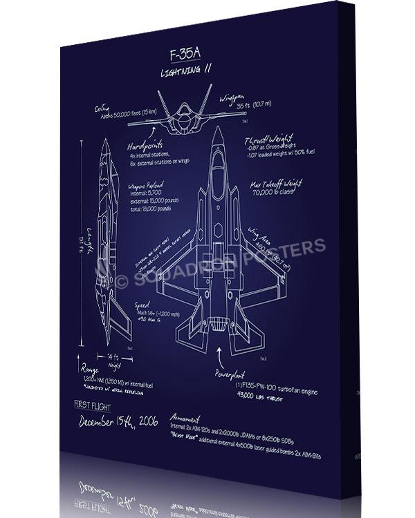 F-35A Blueprint Art vintage style military aviation travel poster art by – Squadron Posters!
