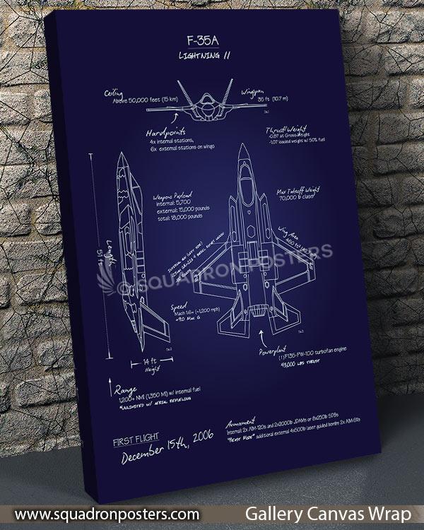 F-35A Blueprint Art vintage style military aviation travel poster art by – Squadron Posters!