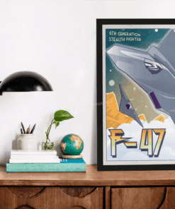 The F-47 program is part of the USAF’s Next Generation Air Dominance initiative, which aims to replace the aging F-22 fleet. The initiative envisions a “family of systems” approach centered on a fast, long-range, stealthy sensor-shooter crewed fighter aircraft called the Penetrating Counter-Air. In 2014, the Defense Advanced Research Projects Agency (DARPA) launched the Aerospace Innovation Initiative to build X-plane prototypes for developing and maturing next-generation fighter aircraft technologies; the DARPA demonstrators would serve as full-scale flight demonstrators for the PCA, with Boeing first flying its demonstrator in 2019. While the PCA was initially expected to operate without needing support from uncrewed collaborative combat aircraft, advances in automation technology has increased their role in the USAF force structure, and the PCA is now expected to be accompanied by CCAs that can carry additional munitions or perform supporting missions. Check out this stunning F-47 Stealth Fighter Art by – Squadron Posters!