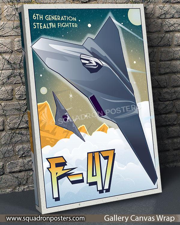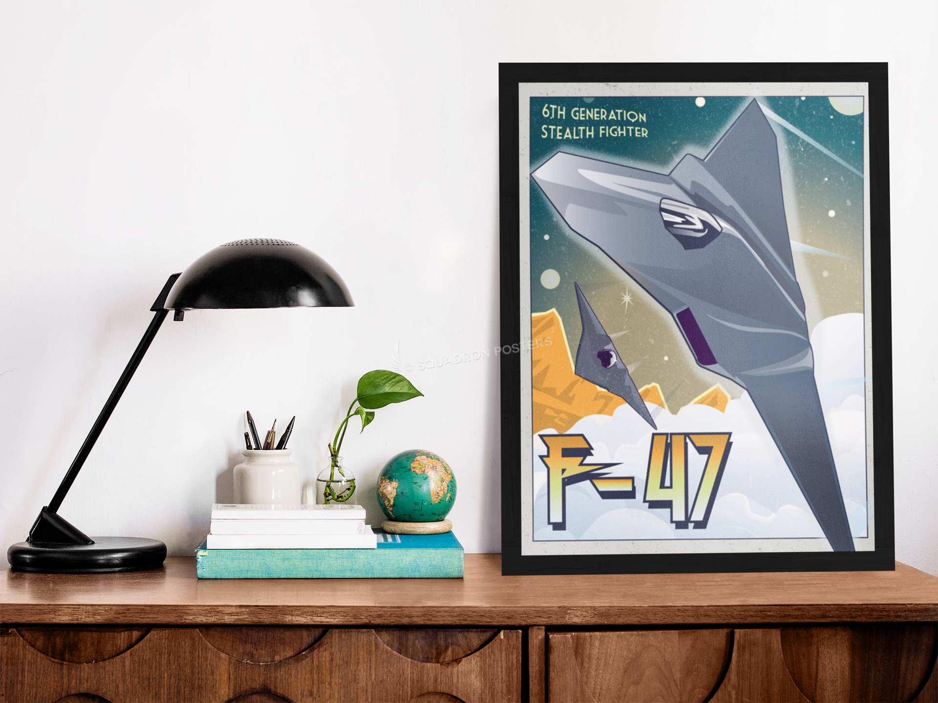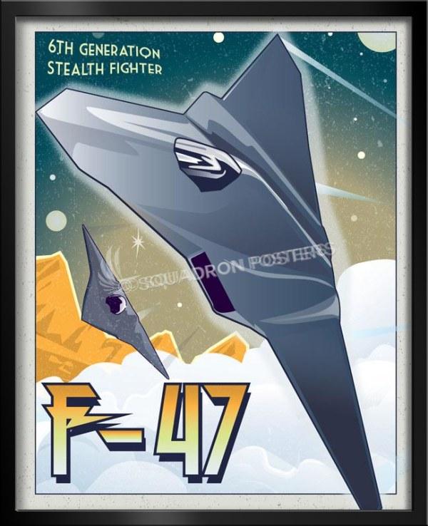 F-47 Stealth Fighter Art vintage style military aviation travel poster art by – Squadron Posters!