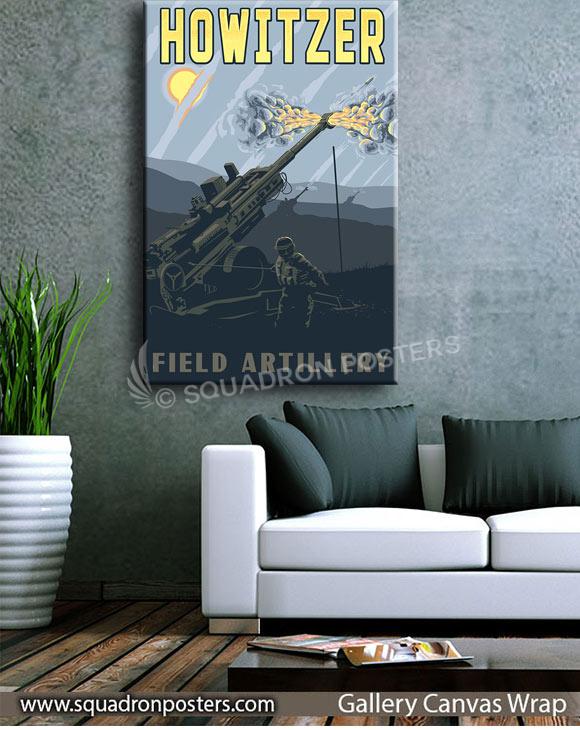 Field Artillery Howitzer vintage style military aviation travel poster art by – Squadron Posters!