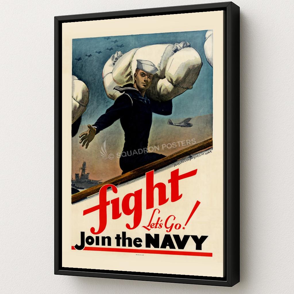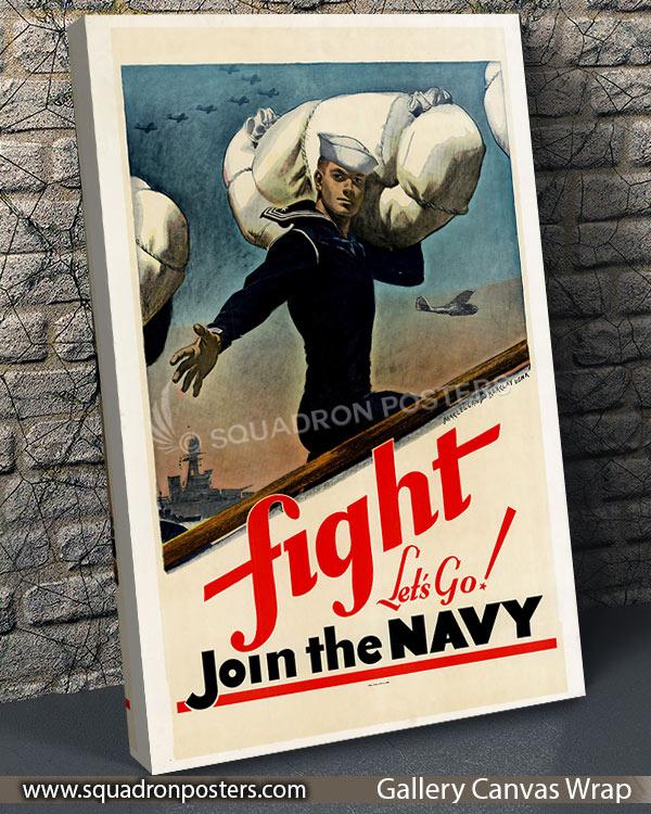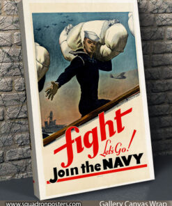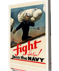 Fight! Let’s Go Join the Navy Historic Art is inspired by classic U.S. Navy recruitment posters that captured the urgency, energy, and fighting spirit of sailors during times of war. The bold call to action reflects the Navy’s readiness to engage, defend, and project power at sea, emphasizing decisive action, teamwork, and national service. Rendered in a vintage poster style, this artwork honors the sailors who answered the call when it mattered most and celebrates the enduring legacy of American naval strength and determination.