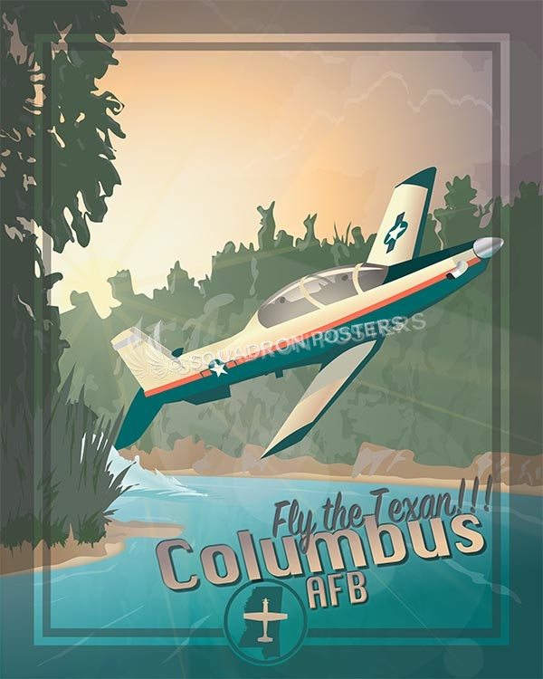Fly the Texan – Columbus AFB vintage style military aviation travel poster art by – Squadron Posters!