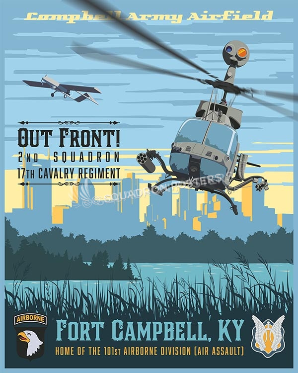 Fort Campbell 101st Airborne 2nd Sq 17th Cav vintage style military aviation poster art by – Squadron Posters!