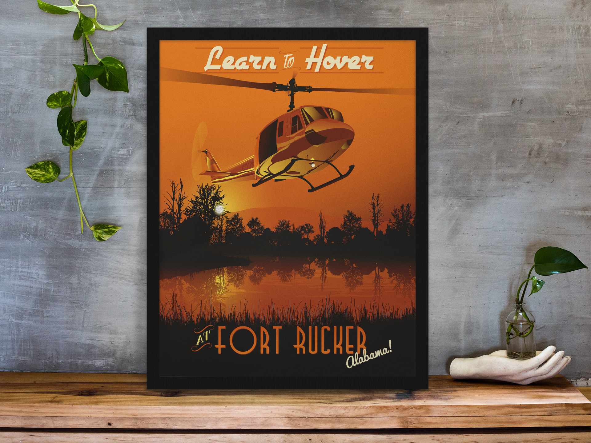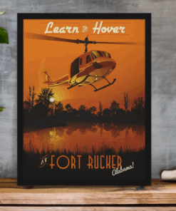 Fort Rucker – Learn to Hover – UH-1 Huey vintage style military aviation art by – Squadron Posters!