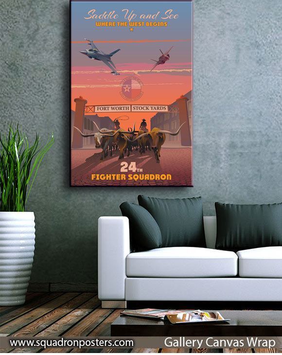 Fort Worth Texas 24th Fighter Squadron vintage style military aviation travel poster art by – Squadron Posters!