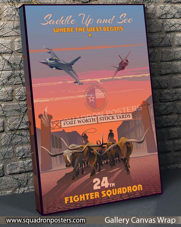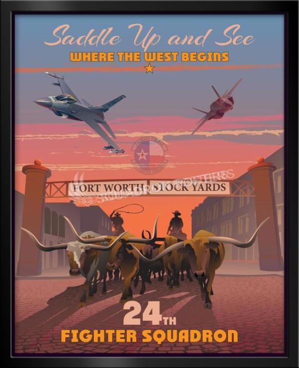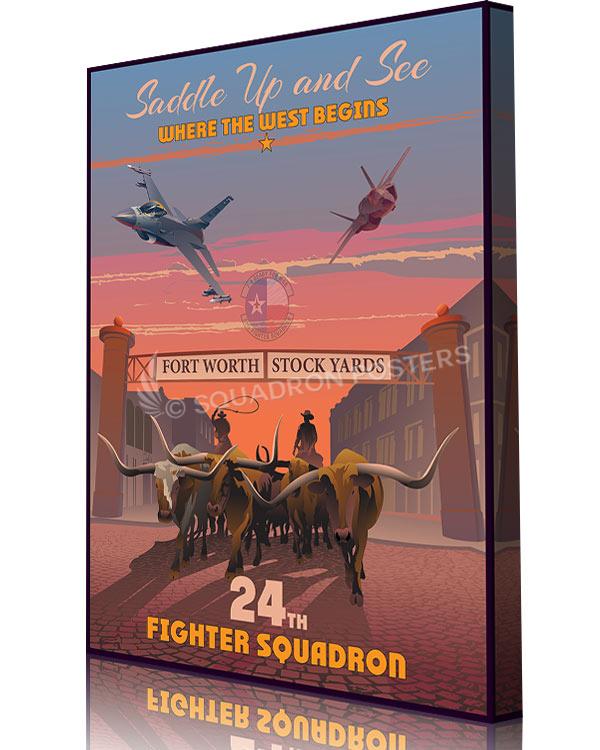 Fort Worth Texas 24th Fighter Squadron vintage style military aviation travel poster art by – Squadron Posters!