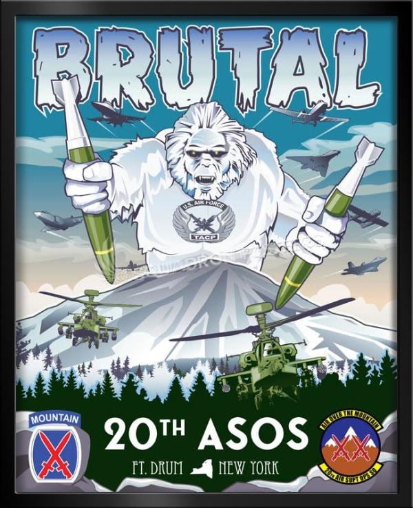 Fort Drum consists of 107,265 acres. In the region, winter temperatures can reach as low as −30 °F (−34 °C). Its mission includes command of active component units assigned to the installation, providing administrative and logistical support to tenant units, support to active and reserve units from all services in training at Fort Drum, and planning and support for the mobilization and training of almost 80,000 troops annually. Check out this stunning Ft Drum New York 20th ASOS Art by – Squadron Posters!