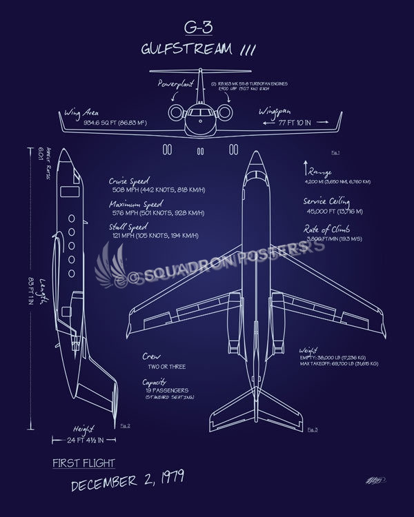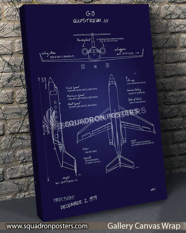 “G-3 Gulfstream III Blueprint Art “ military aviation blueprint art by – Squadron Posters!