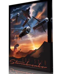 The bomb is developed and manufactured by Raytheon. A Boeing/Lockheed Martin team attempted to develop it but lost in a U.S. Air Force competition. Boeing won the original competition but the project was on hold for several years due to a corruption scandal involving Darleen Druyun. The competition was reopened in September 2005. The bomb can use GPS/INS to guide itself into the general vicinity of a moving target during the initial search phase, with course correction updates provided using a Link 16 over UHF data link. Check out this stunning GBU-53 StormBreaker art by – Squadron Posters!