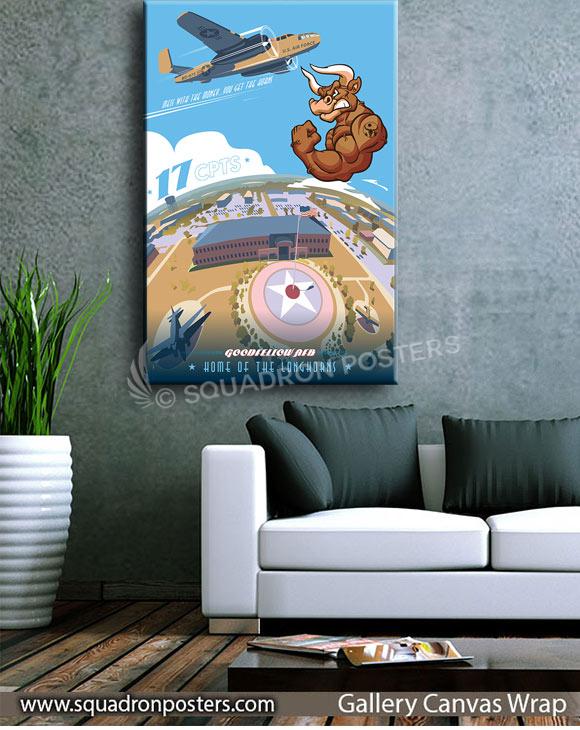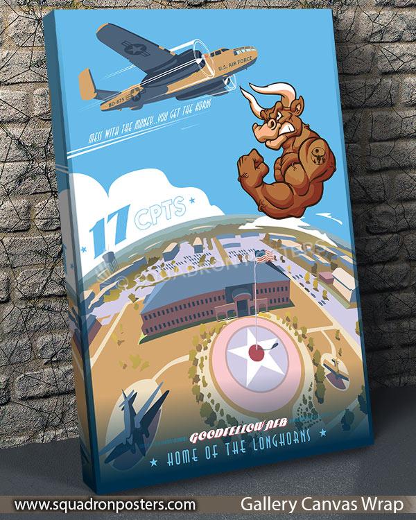 Goodfellow AFB Texas 17th CPTS Longhorns vintage style military aviation travel poster art by – Squadron Posters!