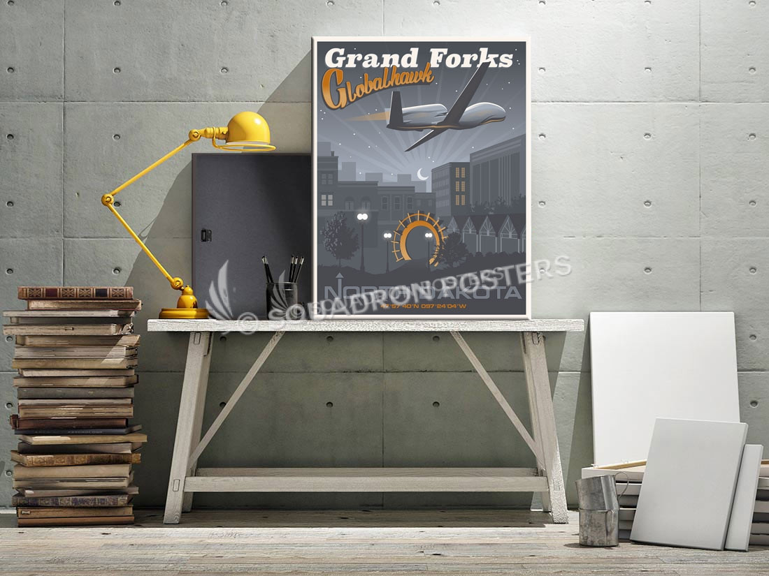 “Grand Forks AFB RQ-4 Global Hawk” vintage style poster art by – Squadron Posters!