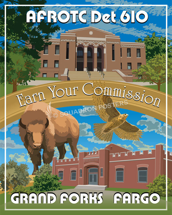 Grand Forks Fargo AFROTC DET 610 vintage style military aviation travel poster art by – Squadron Posters!