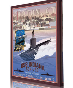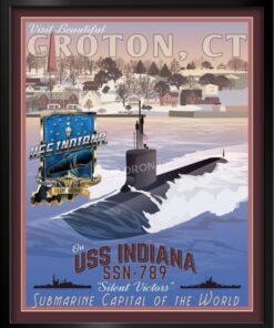 This poster is dedicated to the Submariners who served on the USS Indiana. USS Indiana (SSN – 789) is a Virginia – class attack submarine, the third ship of the United States Navy to be named for the State of Indiana. Like her 20 th century big gunned predecessors, BB – 1 and BB – 58, Indiana continues the tradition of bringing cutting – edge, devastating firepower to the frontline of naval conflict. The contract to build her was awarded to Newport News Shipbuilding in Newport News, Virginia on 22 December 2008, her keel was laid down on 16 May 2015, launched on 9 June 2017 and commissioned on 29 September 2018. USS Indiana is a member of Submarine Squadron Twelve, home ported at Naval Submarine Base New London, Connecticut. New London and by extension Groton, is the United States Navy’s premier East Coast submarine base, also known as the “Submarine capital of the world”.