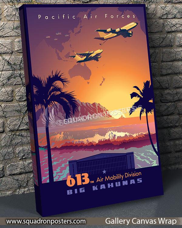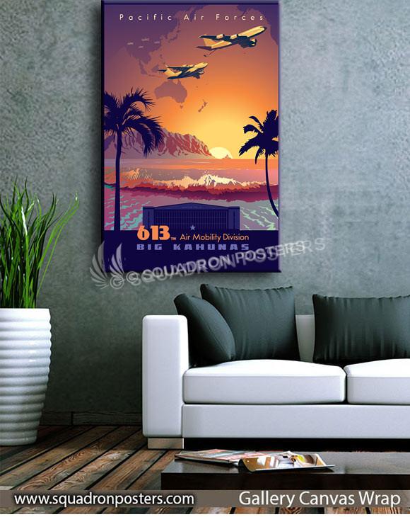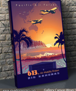 “Hawaii 613th Air Mobility Division” vintage style military aviation travel poster art by – Squadron Posters!
