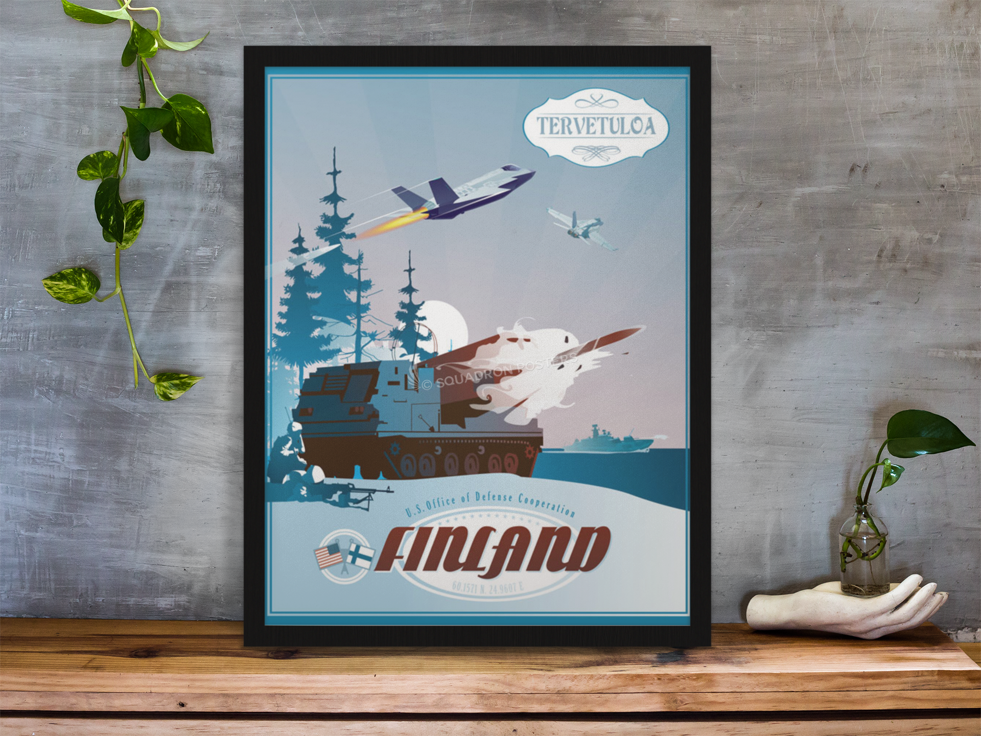 Helsinki Finland ODC Art vintage style military aviation travel poster art by – Squadron Posters!