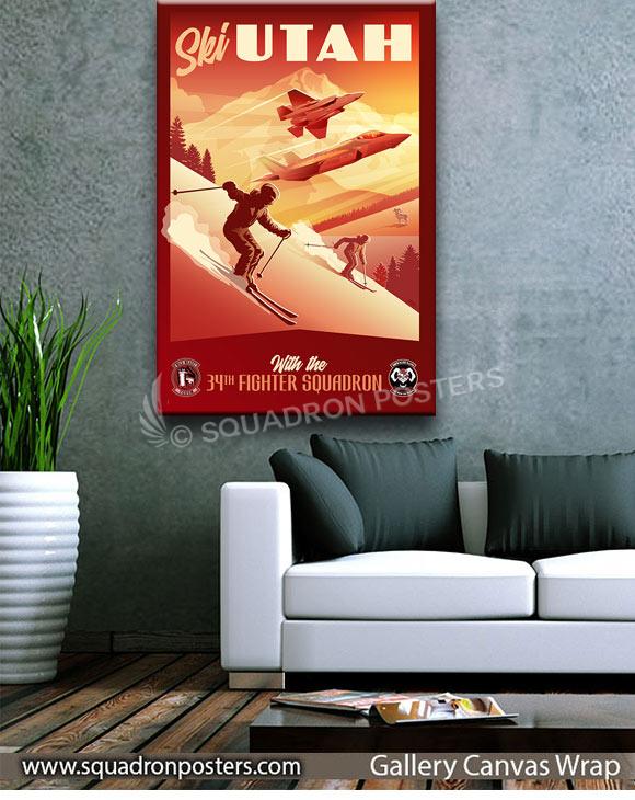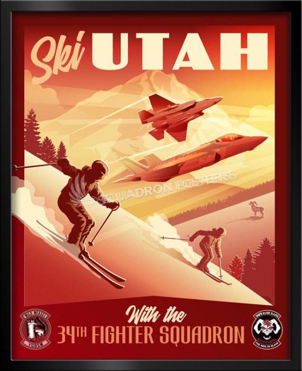 Hill AFB 34th Fighter Squadron Art vintage style military aviation travel poster art by – Squadron Posters!