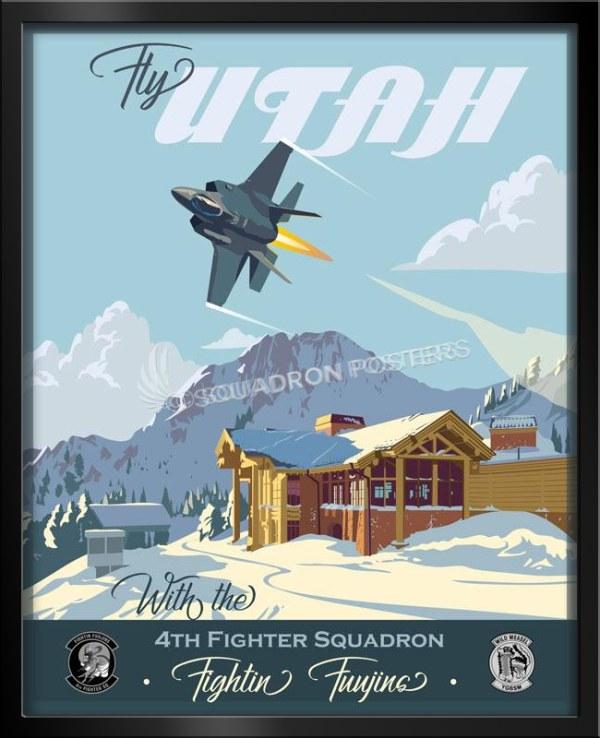 Hill AFB Utah 4th FS Art vintage style military aviation travel poster art by – Squadron Posters!