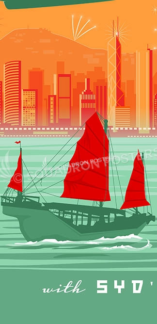 Fly to Hong Kong with “Syd’s Pirates” poster artwork by Squadron Posters