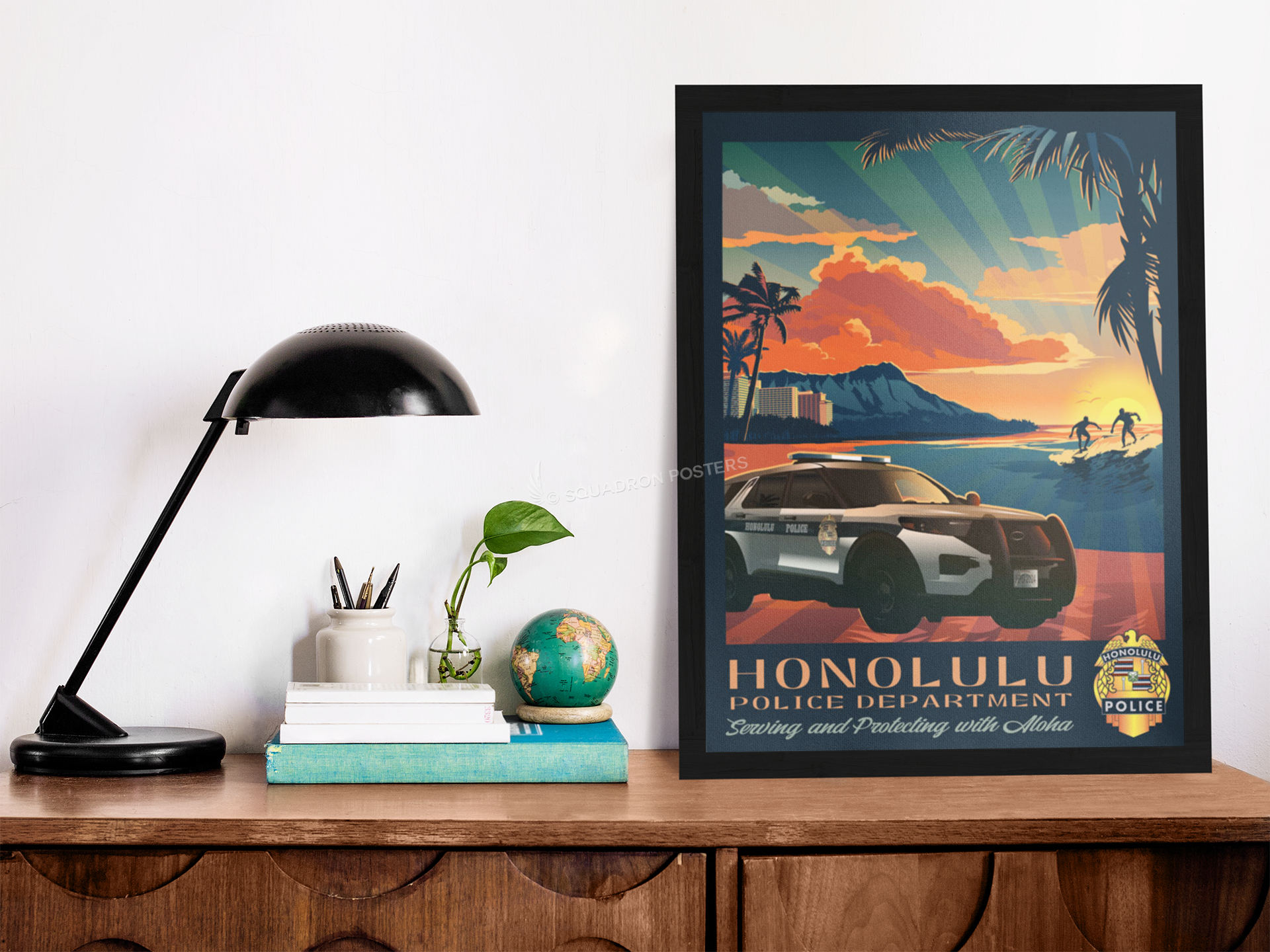 In 2024 The Honolulu Police Department was instrumental in helping to resolve one of the nation’s oldest (over a half century) and most difficult cold case murders in America, as told in the book: “The Brittle Riddle” – by Jack Anderson. All the proceeds from the sales of this book and this artwork go to: DNA Justice™, a 501(c)(3) nonprofit dedicated to helping law enforcement agencies solve their most difficult cases while providing answers to families of victims (including veterans and their families). – Published in cooperation with Squadron Posters / Squadron Books!