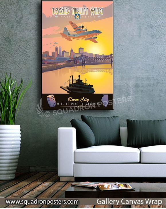 Illinois ANG 182nd AW vintage style military aviation travel poster art by – Squadron Posters!