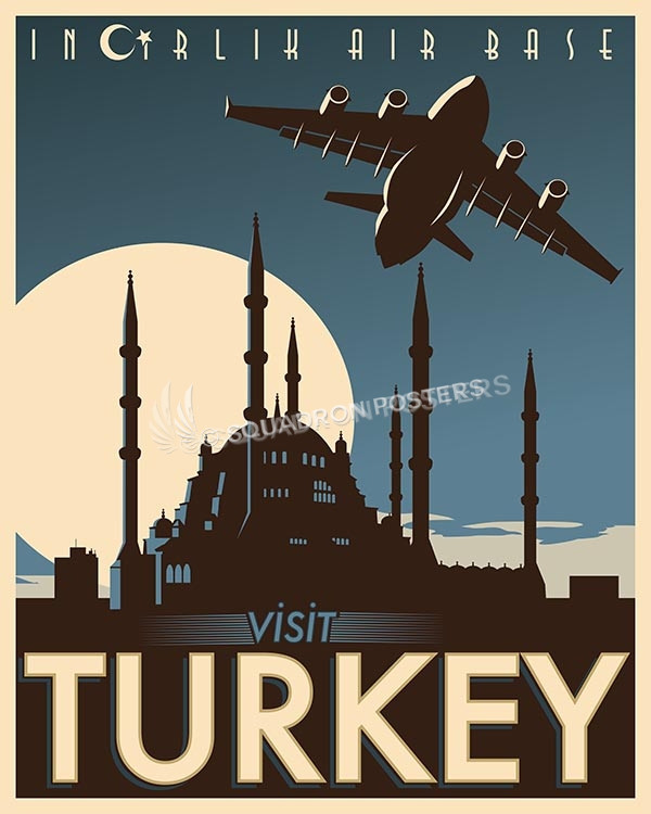 “Incirlik Air Base C-17” vintage style military aviation art by – Squadron Posters!
