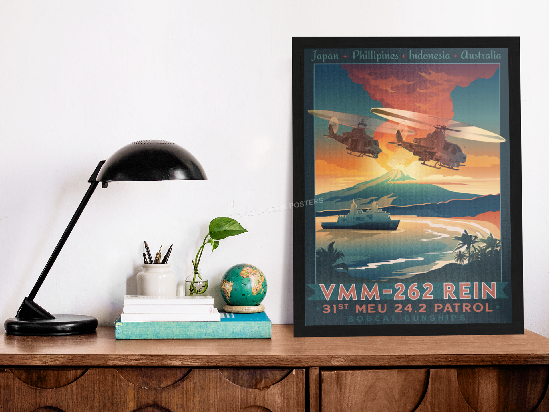 Indonesia VMM-262 REIN AH-1 Lead vintage style military aviation travel poster art by – Squadron Posters!