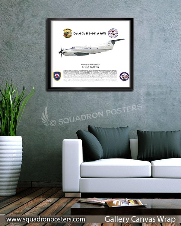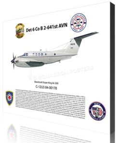 Originally designated U-25A, the first C-12A models entered service with the U.S. Army in 1974 and were used as a liaison and general personnel transport. The aircraft was essentially an “off-the-shelf” Super King Air 200, powered by the type’s standard Pratt & Whitney Canada PT6A-41 engines. Check out this stunning Iowa Air National Guard Det 6 Co B 2-641st AVN Art by Squadron Posters!