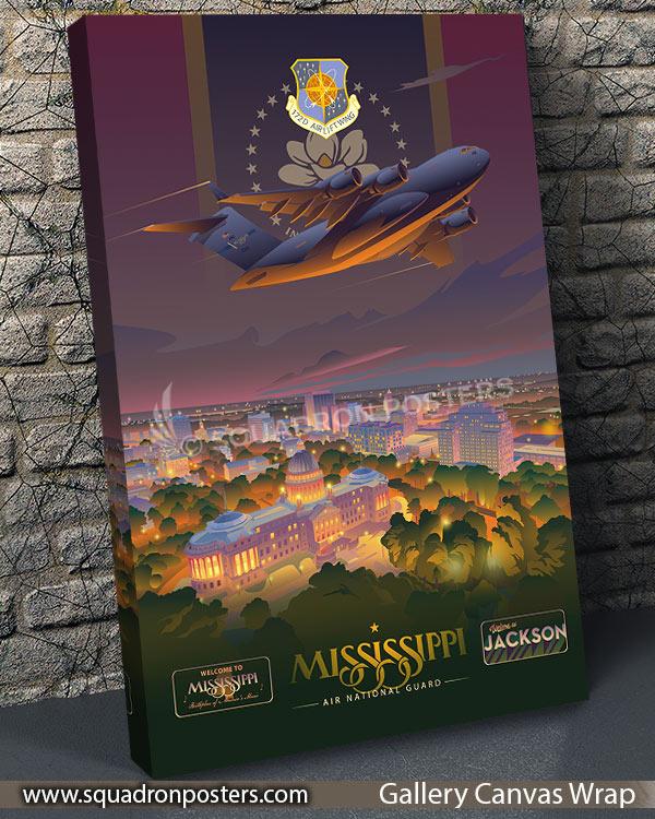 Jackson Mississippi ANG 172d AW vintage style military aviation travel poster art by – Squadron Posters!