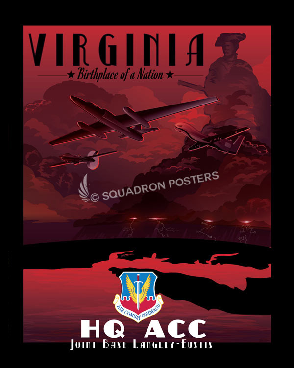 “JB Langley-Eustis HQ ACC” vintage style military aviation travel poster art by – Squadron Posters!
