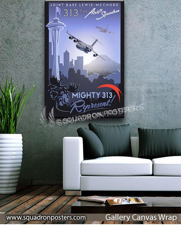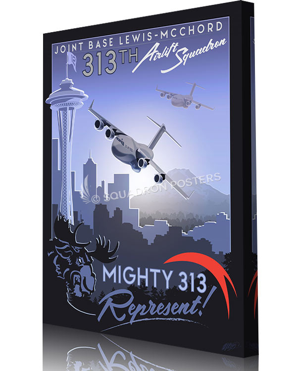 JB Lewis-McChord 313th Airlift Squadron vintage style military aviation travel poster art by – Squadron Posters!