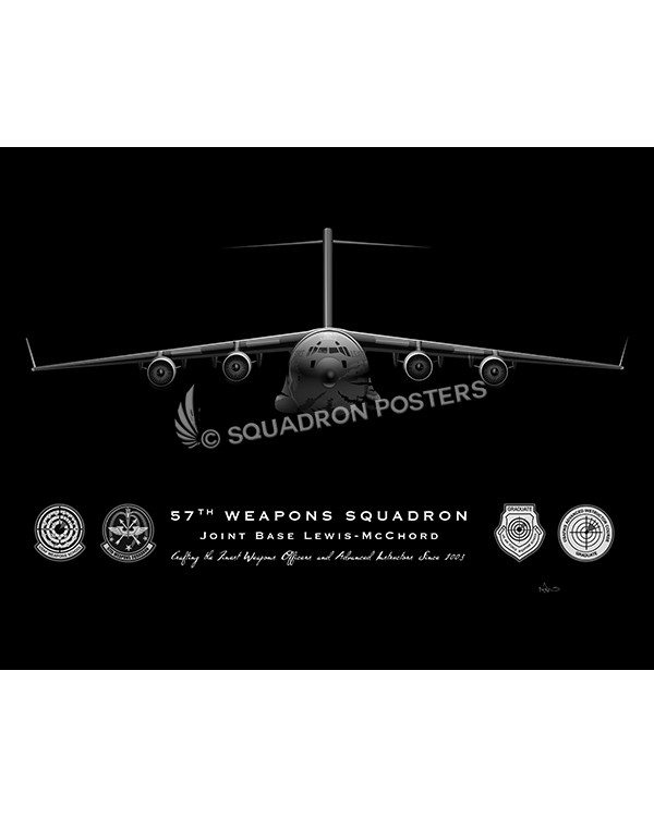 The 57th Weapons Squadron, located at Joint Base Lewis-McChord, WA is part of the USAF Weapons School. It teaches graduate-level instructor courses that provide the world’s most advanced training in weapons and tactics employment for the C-17. During the course, students receive an average of 400 hours of graduate-level academics and participate in demanding combat training missions.