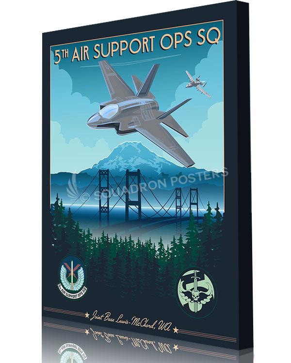 The 5th Air Support Operations Squadron (5 ASOS) provides Tactical Air Control Party (TACP) Special Warfare capabilities in support of two U.S. Army Stryker Brigade Combat Teams and the joint warfighter. Additionally, the squadron leverages multi-domain operations to employ precision strike, command and control, and the synchronization of joint fires across the full spectrum of joint military operations. The unit is operationally comprised of Joint Terminal Attack Controllers (JTACs) Intelligence, Surveillance, Reconnaissance Liaison Officers (ISRLOs), and combat mission support specialists such as vehicle maintenance; power production; heating, ventilation and air conditioning; logistics; and cyber technicians.