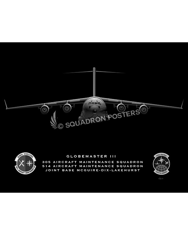 “C-17 JB McGuire-Dix-Lakehurst 305th AMXS Jet Black Lithograph “ vintage style art by – Squadron Posters!