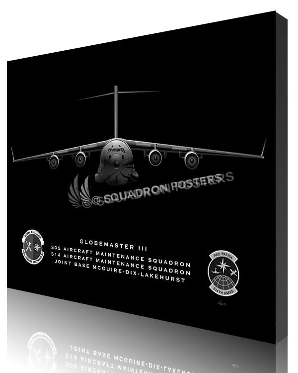 “C-17 JB McGuire-Dix-Lakehurst 305th AMXS Jet Black Lithograph “ vintage style art by – Squadron Posters!