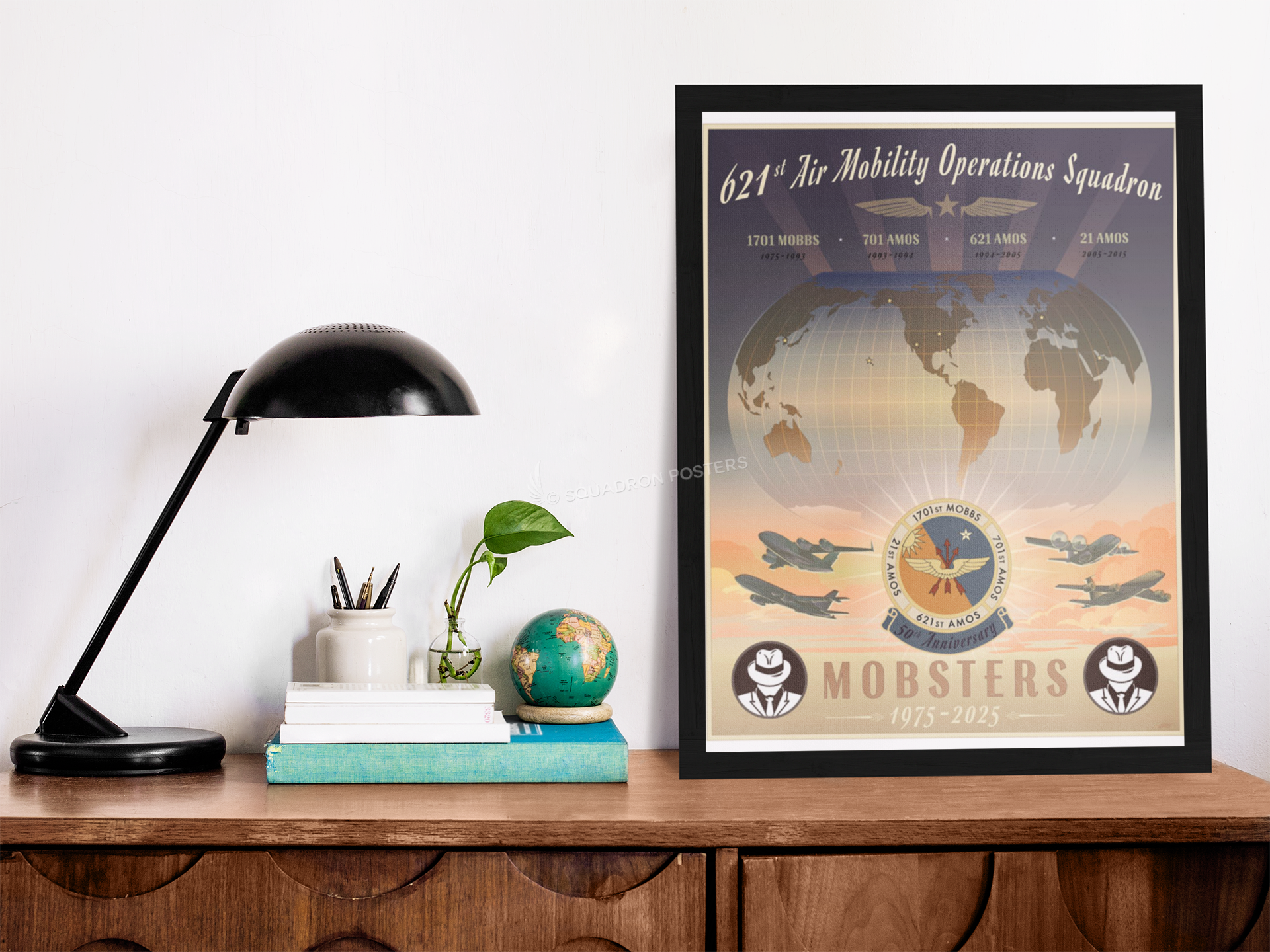 JB McGuire-Dix-Lakehurst 621st AMOS 50th Anniversary vintage style military aviation travel poster art by – Squadron Posters!