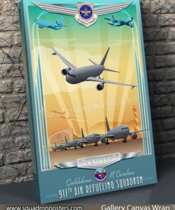 The Boeing KC-46 Pegasus is an American military aerial refueling and strategic military transport aircraft developed by Boeing from its 767 jet airliner. In February 2011, the tanker was selected by the United States Air Force as the winner in the KC-X tanker competition to replace older Boeing KC-135 Stratotankers. The first aircraft was delivered to the USAF in January 2019. The USAF intends to procure 179 tankers by 2027. Check out this stunning JB McGuire-Dix-Lakehurst 911th ARS Art by – Squadron Posters! Collect all your military travels and tell your story!