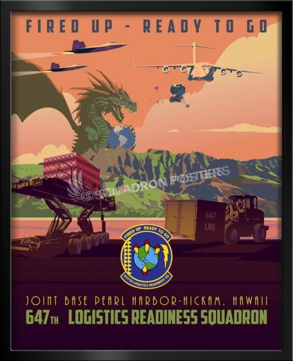 JB Pearl Harbor Hickam Hawaii 647th LRS Art vintage style military aviation travel poster art by Squadron Posters!