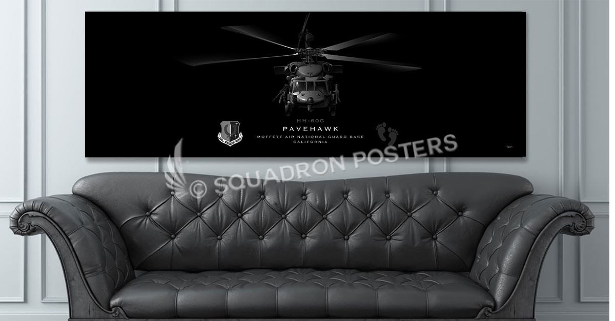 “Jet Black MOFFETT ANGB H-60 129th RW Super Wide” military aviation poster art by – Squadron Posters!