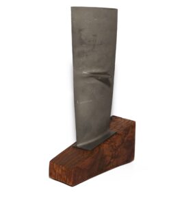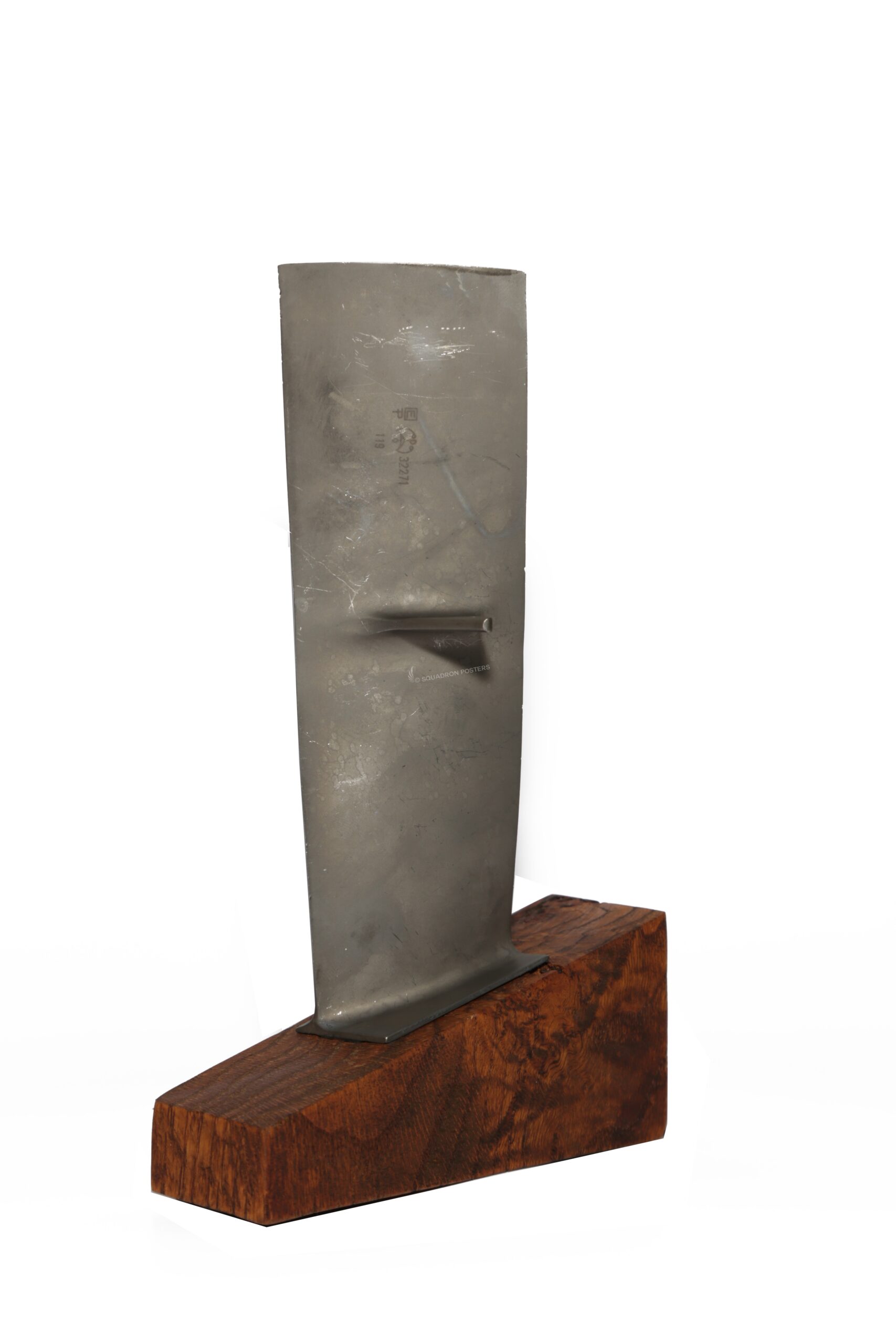 Need a piece of Eagle Jet Engine on your desk? Jet Engine compressor fan blade for F-15 out of “de-mil’d” (scrapyard blades from actual compressor sections that are outside spec, not to be used again). They come on a stained wood-base for display on a shelf or desk. Great gift for pilots, mechanics, aircrew, airmen, support etc. These jet engine blades are the real deal! Authentic salvaged parts from Altitude Relics in Riverside California.