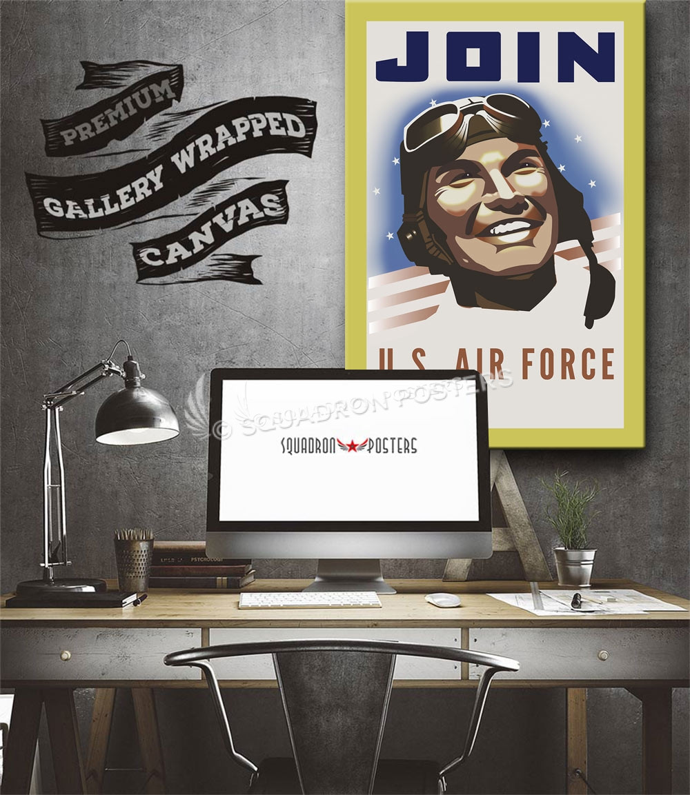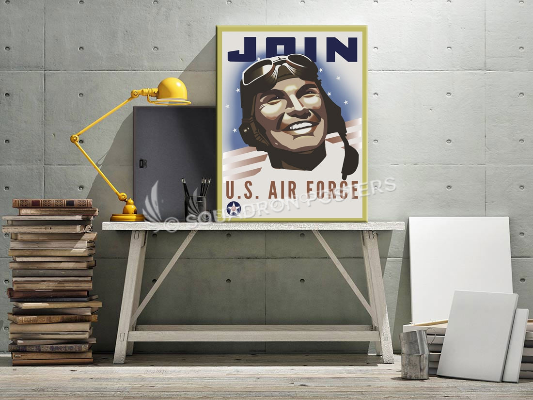 “Join U.S. Air Force!” – Poster Artwork, part of our Vintage Reproduction Series created in high resolution vector graphics by Squadron Posters! This artwork is based on the “Join U.S. Army Air Corps”  – Vintage WWII poster and is an updated modern version of the original artwork (seen below).