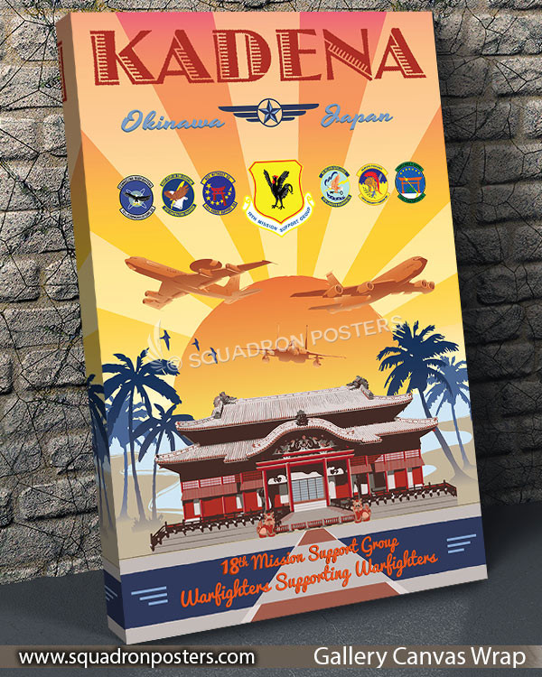 “Kadena AB 18th MSG” vintage style military aviation travel poster art by – Squadron Posters!