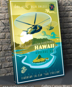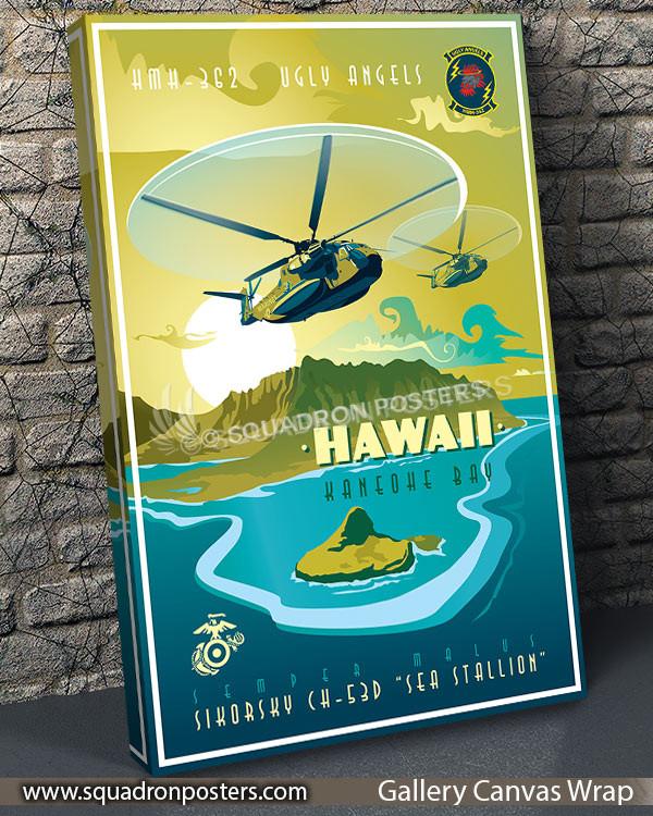 Kaneohe Bay Hawaii HMH-362 CH-53 vintage style military aviation travel poster art by – Squadron Posters!