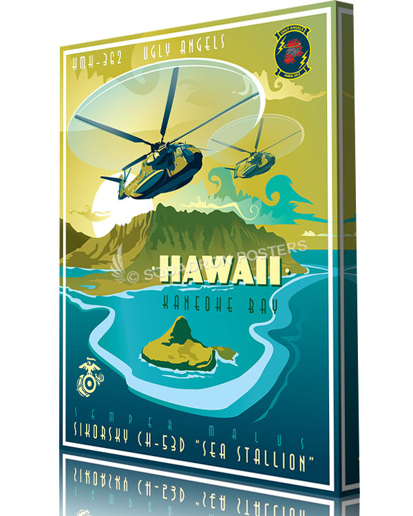 Kaneohe Bay Hawaii HMH-362 CH-53 vintage style military aviation travel poster art by – Squadron Posters!