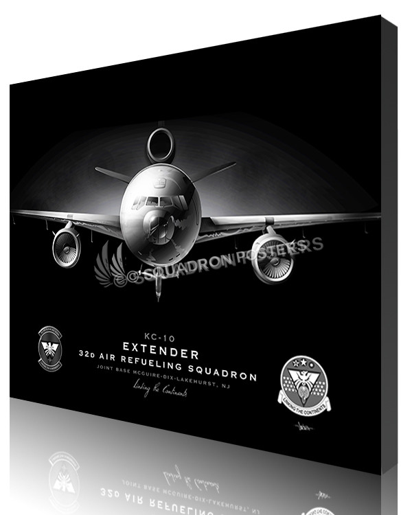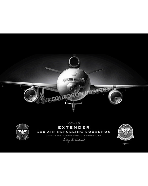 “KC-10 32 ARS Jet Black Lithograph” military aviation poster art by – Squadron Posters!