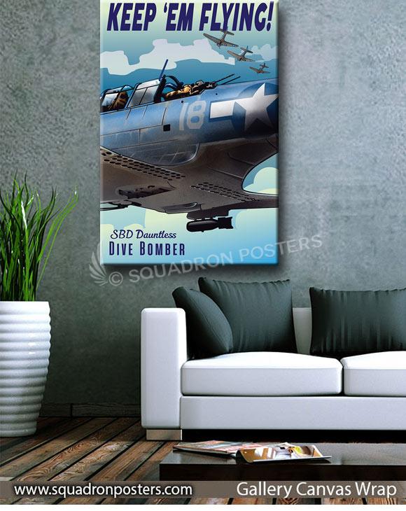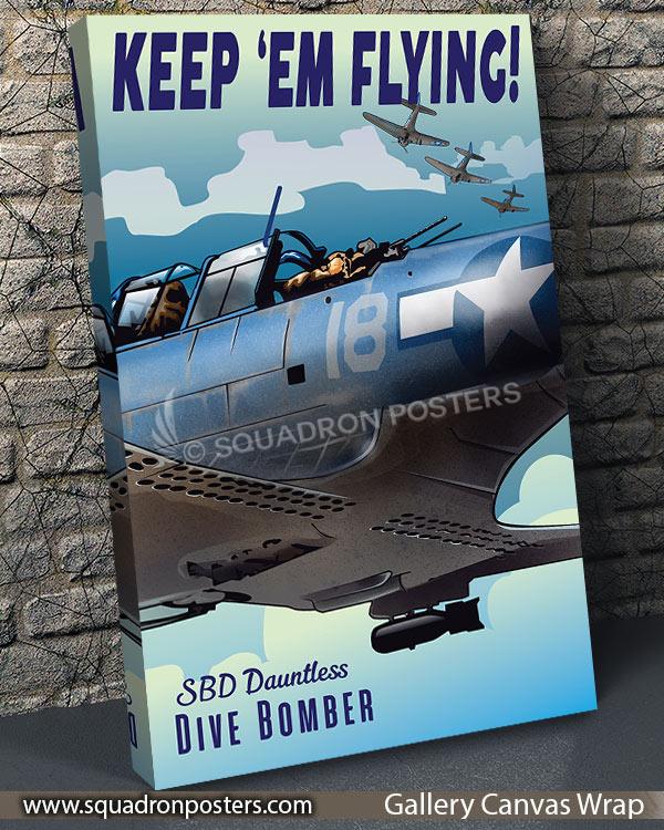 Keep ’em Flying Dauntless vintage style military aviation travel poster art by – Squadron Posters!