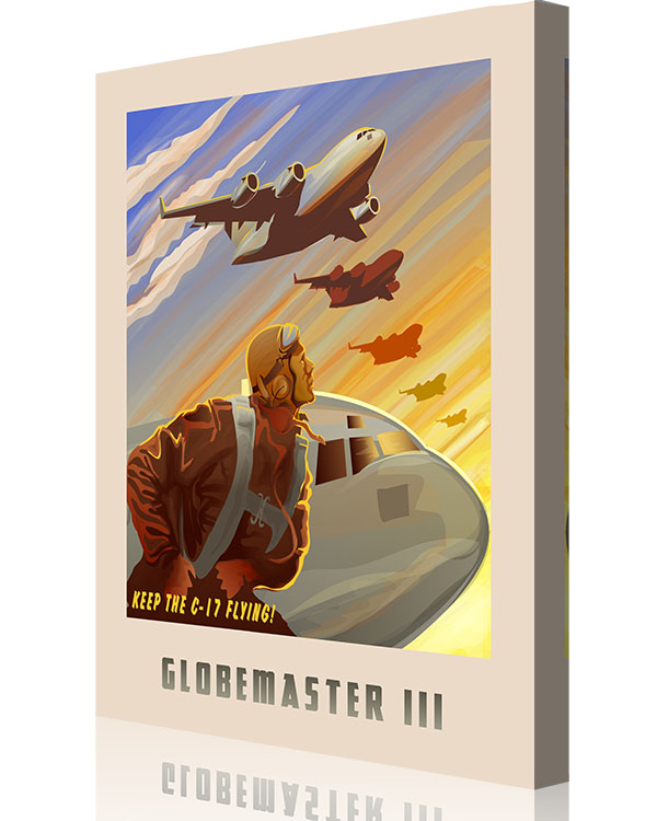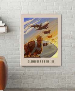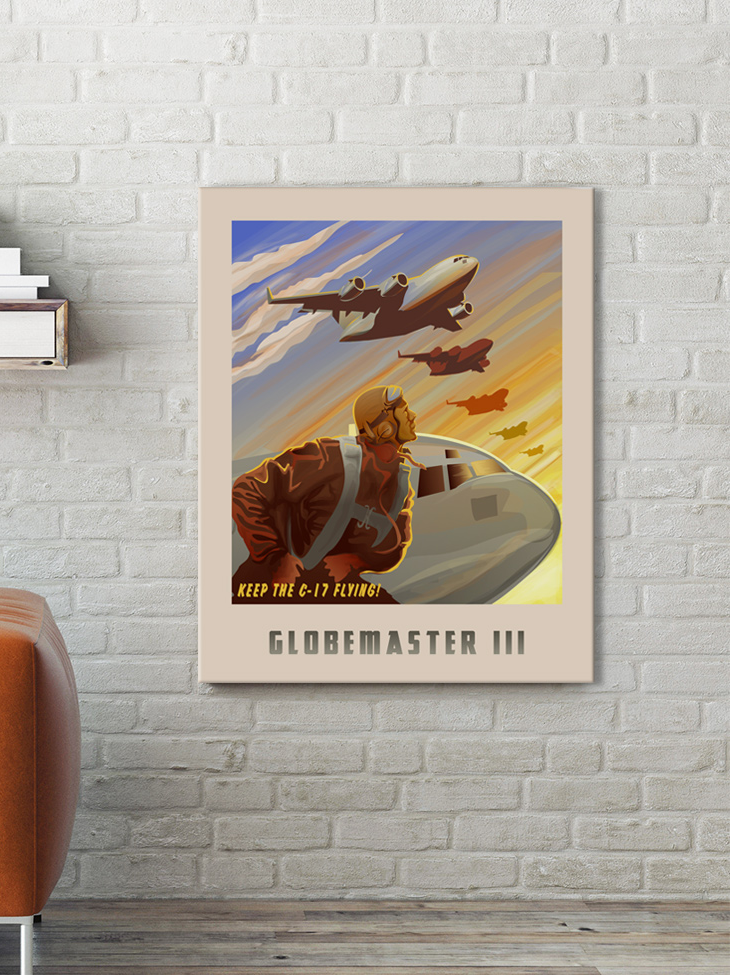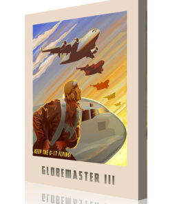 “Keep the C-17 Flying” vintage style military aviation travel poster artwork by – Squadron Posters!