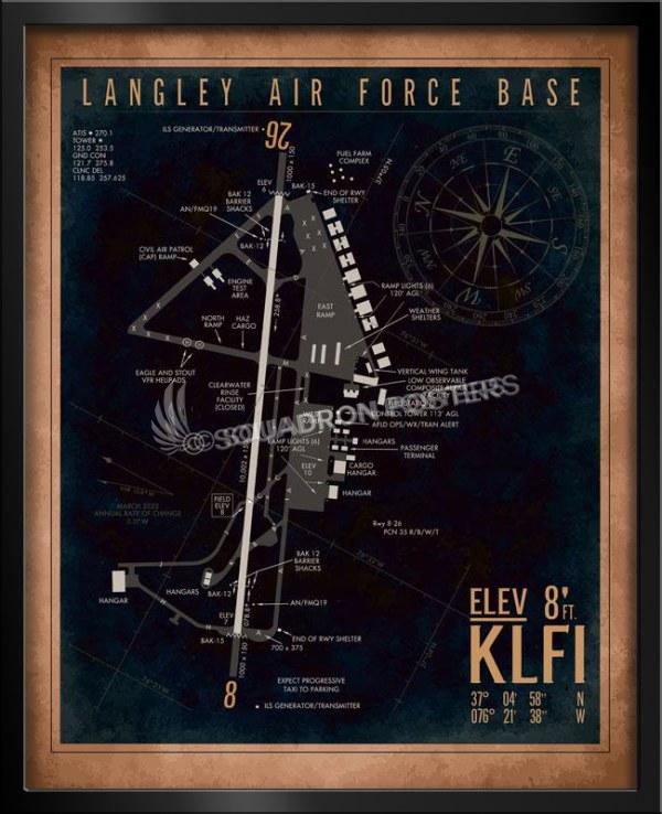 KLFI Langley AFB Airfield Art vintage style military aviation travel poster art by – Squadron Posters!